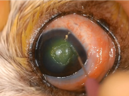 一只7岁混血狗角膜溃疡的第21天仍未康复,使用Sentrx角膜修复凝胶14天后痊愈。
