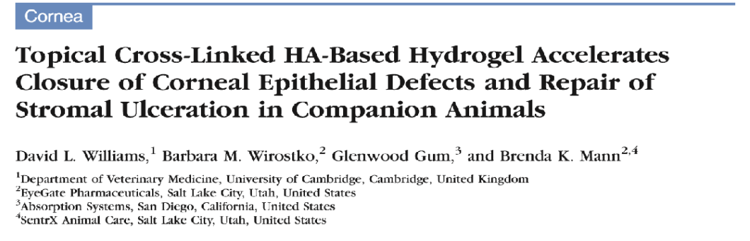 闪粹角膜修复凝胶含高浓度交联透明质酸的配方,可滋润和润滑眼睛,增强狗和猫的眼部愈合能力,对于表面的伤口,眼睛刮伤或抓伤、角膜穿孔的创伤性伤口、手术切口、角膜溃疡等均有明显的临床优势: