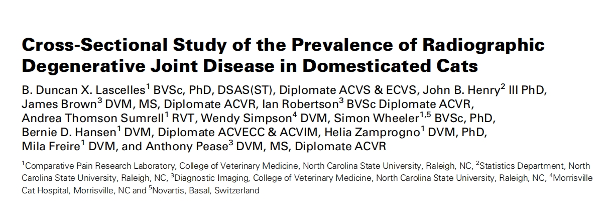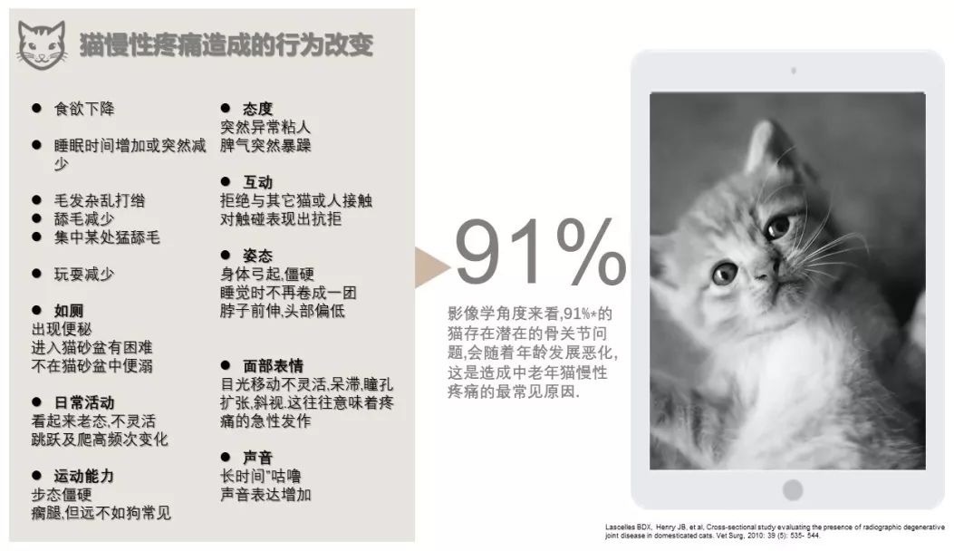 参考文献:[1]B. Duncan X. Lascelles BVSc, PhD, DSASST, Diplomate ACVS & ECVS, et al. "Cross㏒ectional Study of the Prevalence of Radiographic Degenerative Joint Disease in Domesticated Cats." Veterinary Surgery 39.5(2010):535-544.